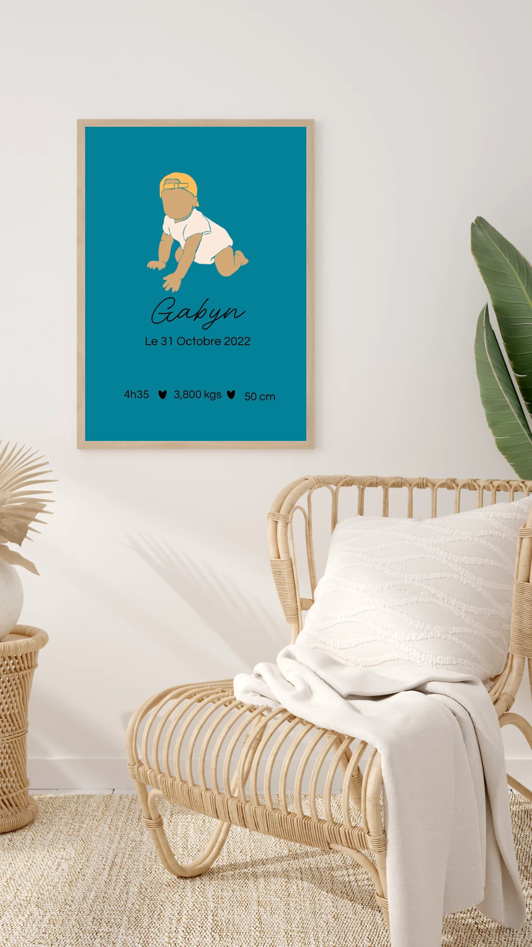 Une création unique pour décorer vos murs avec émotion.Personnalisez votre affiche avec les informations de naissance pour un cadeau original et une décoration qui vous ressemble.