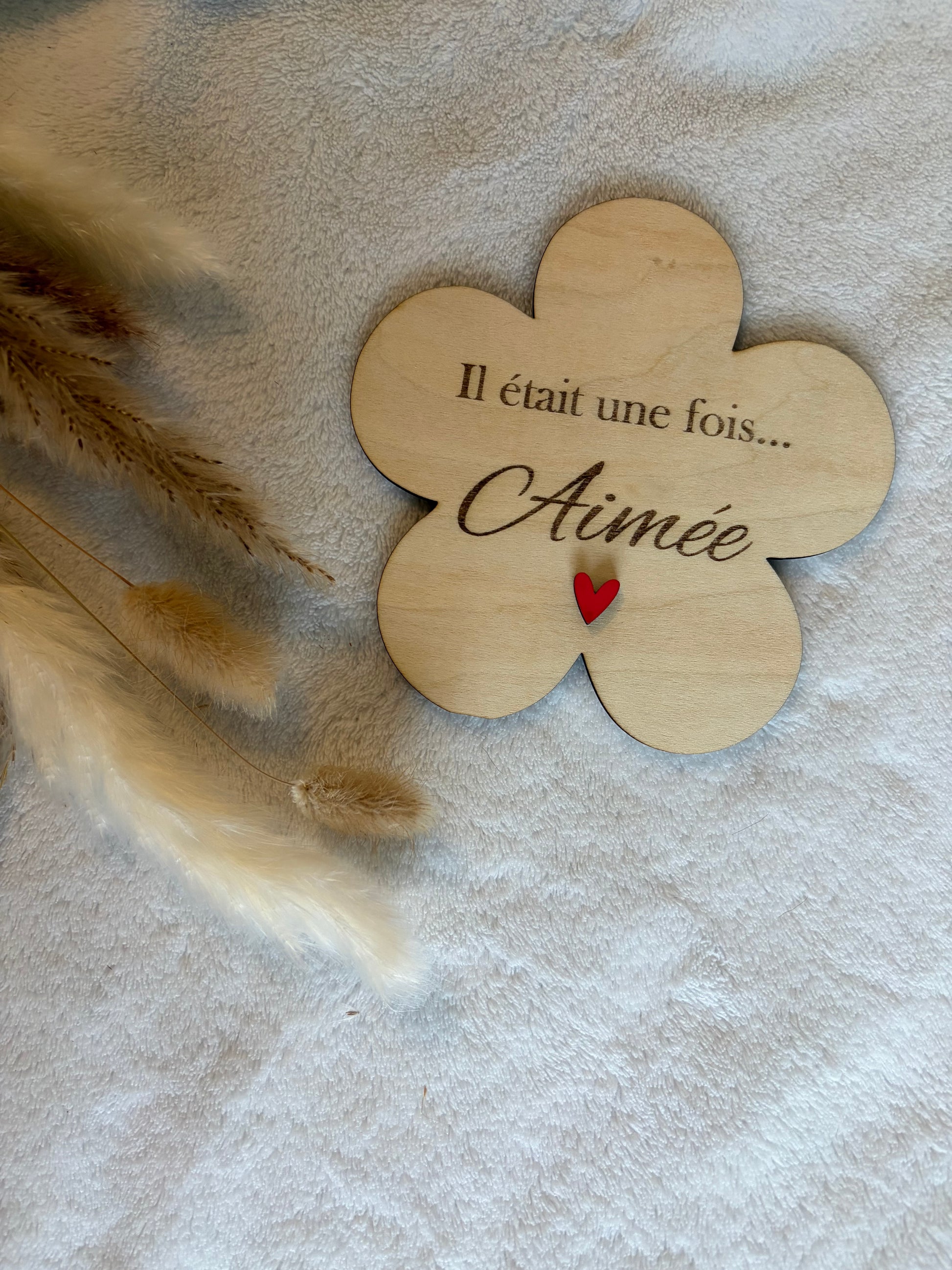 Le prénom personnalisé vient s’intégrer harmonieusement au motif floral, pour une décoration douce et chaleureuse.