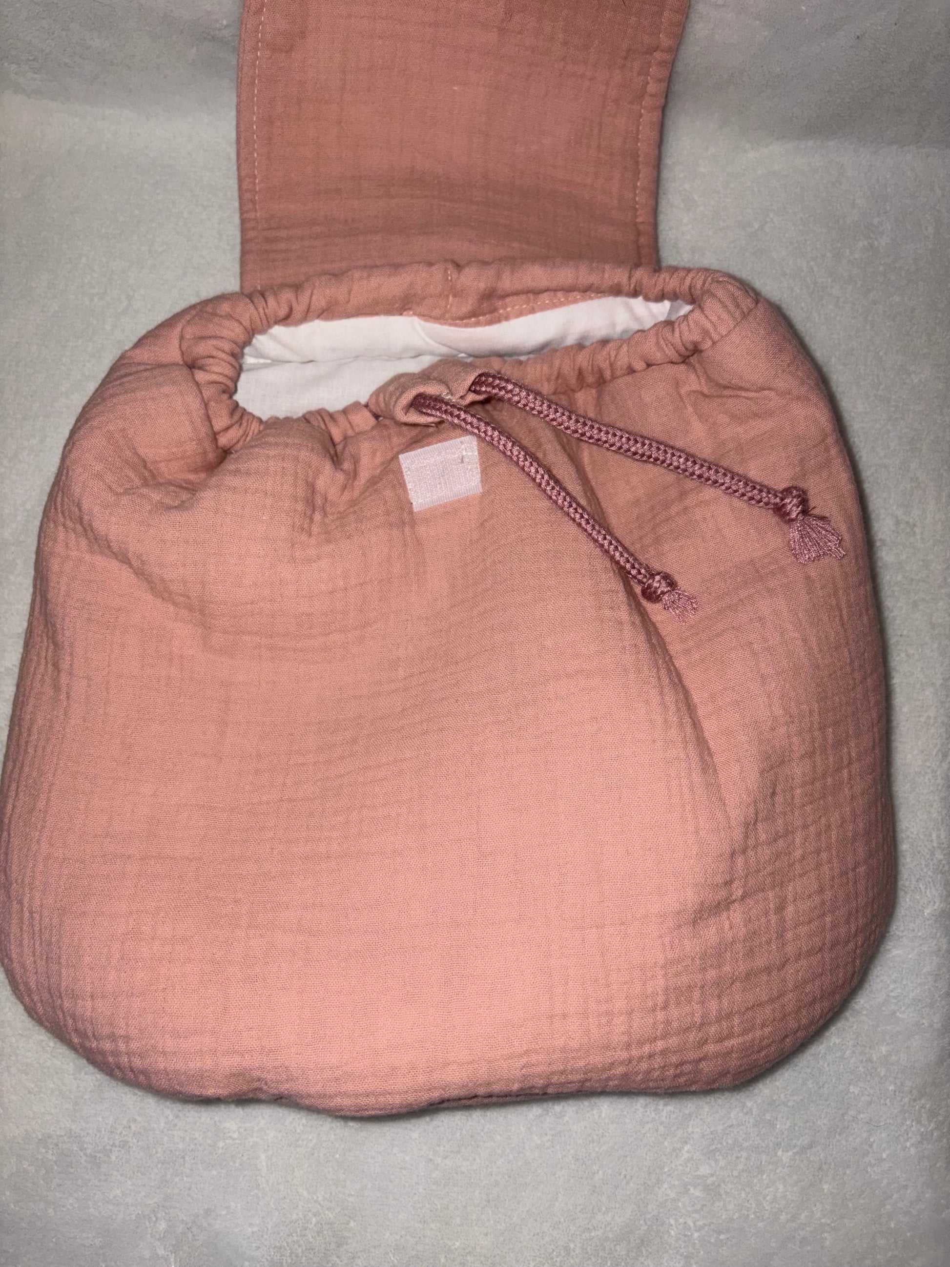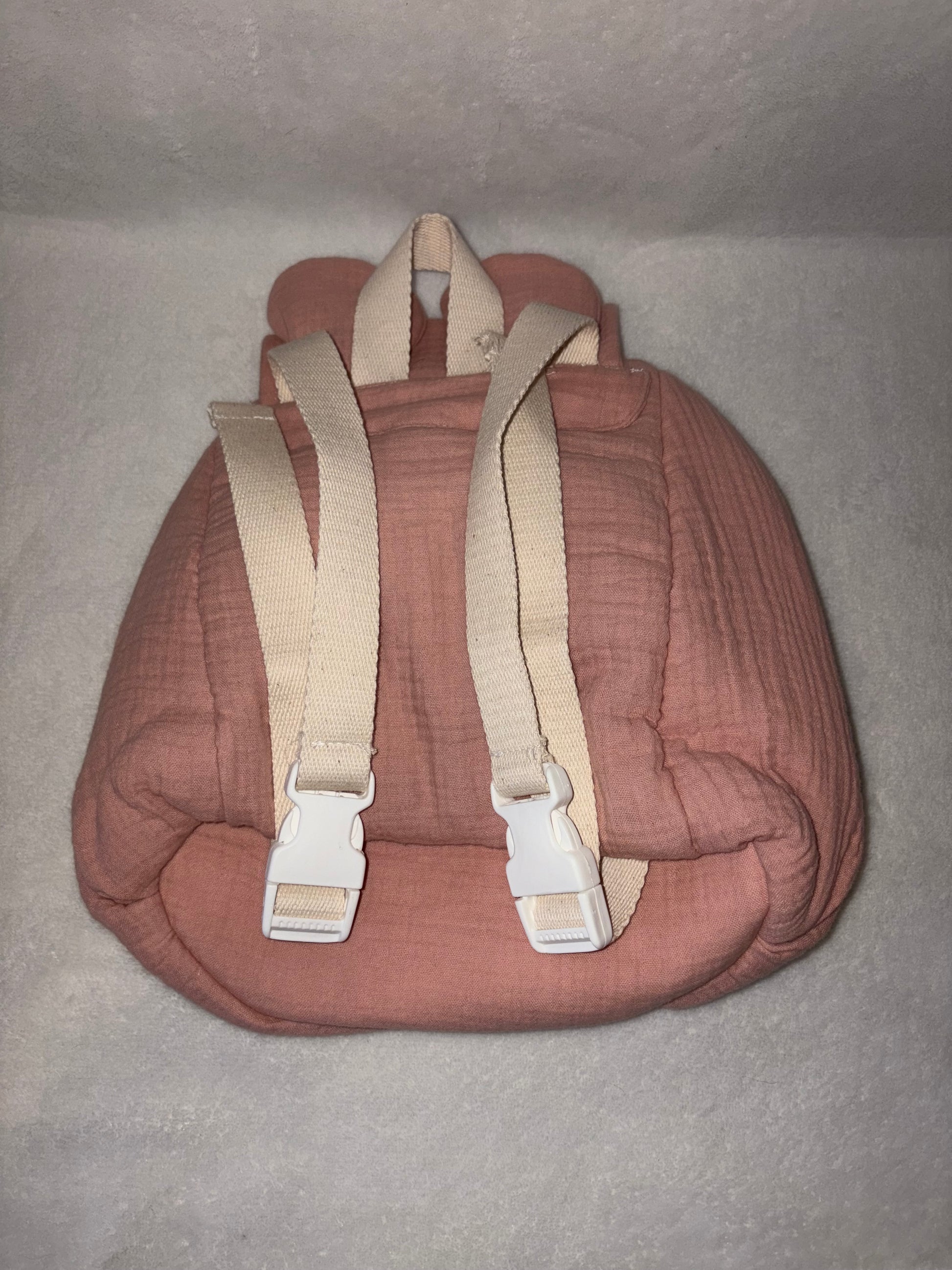 Confectionné en double gaze de coton, ce sac allie légèreté, confort et charme avec ses petites oreilles de souris adorables.
