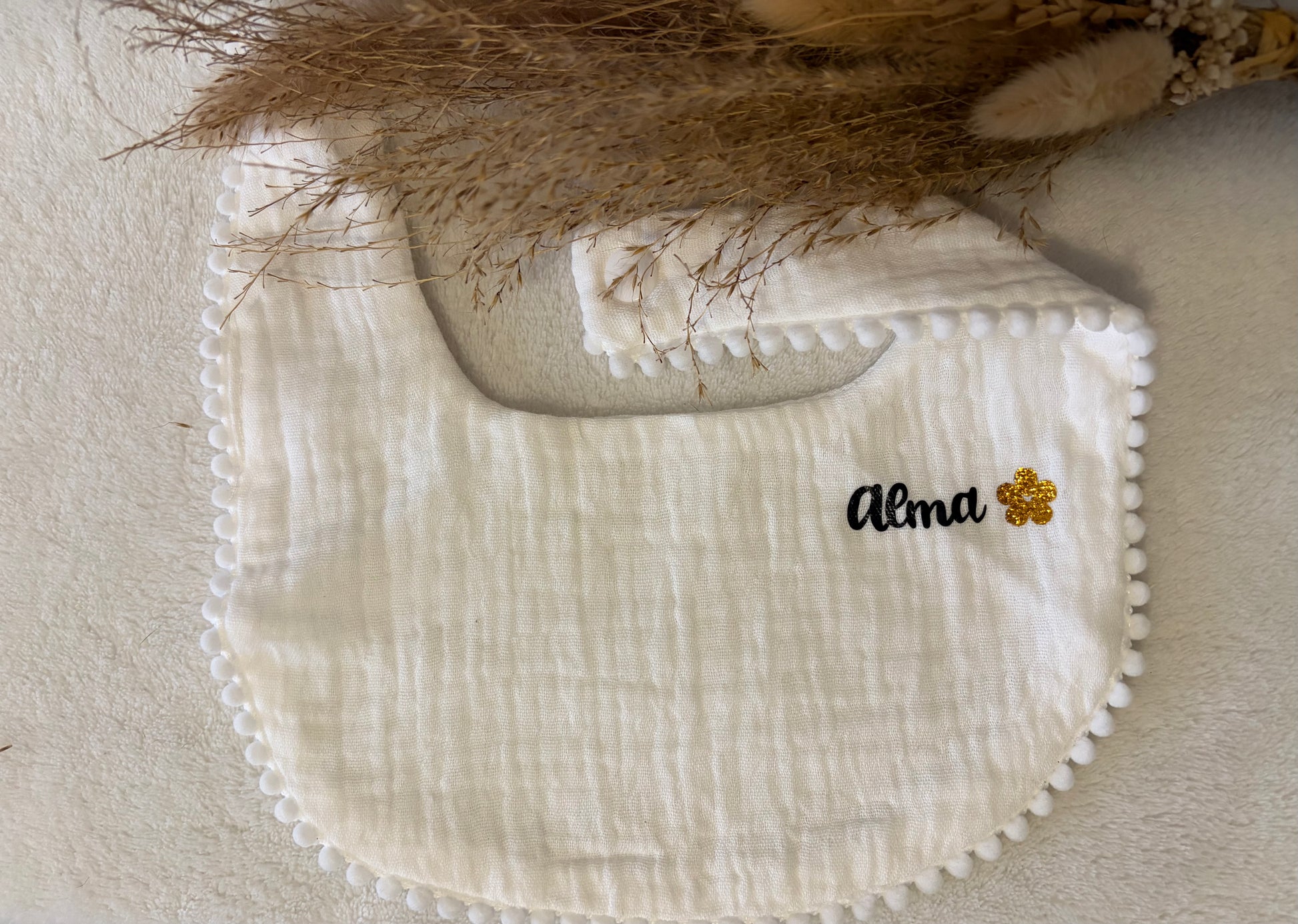 Orné d’un petit mot mignon ou du prénom de bébé, ce bavoir devient un accessoire unique du quotidien, aussi joli qu’utile. Idéal pour protéger les vêtements tout en apportant une note pleine d’amour, il accompagne bébé lors de ses premiers repas avec confort et douceur.