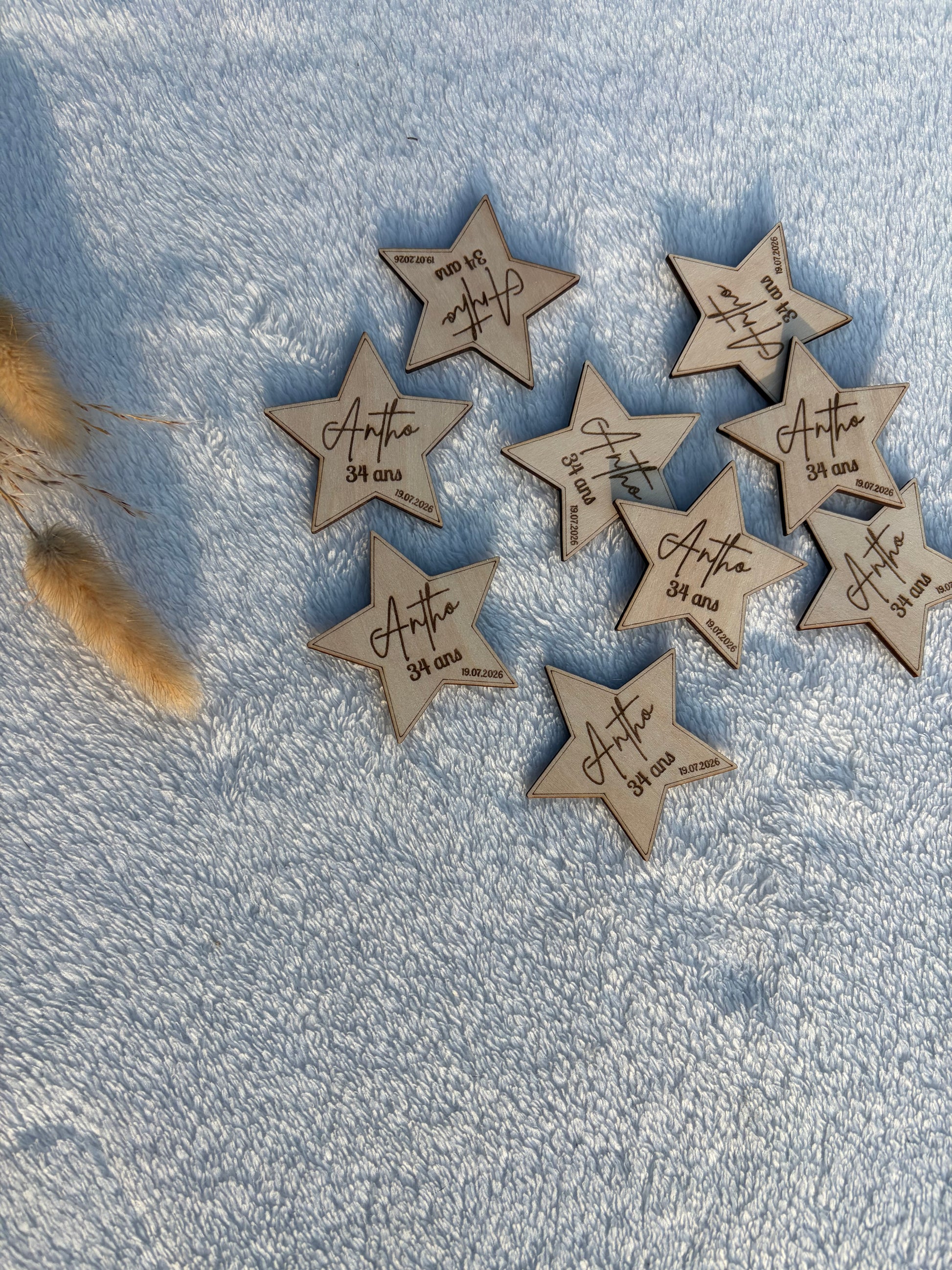 • Texte gravé libre : prénom, âge, date (ex. : “Antho – 34 ans – 19.07.2026”)