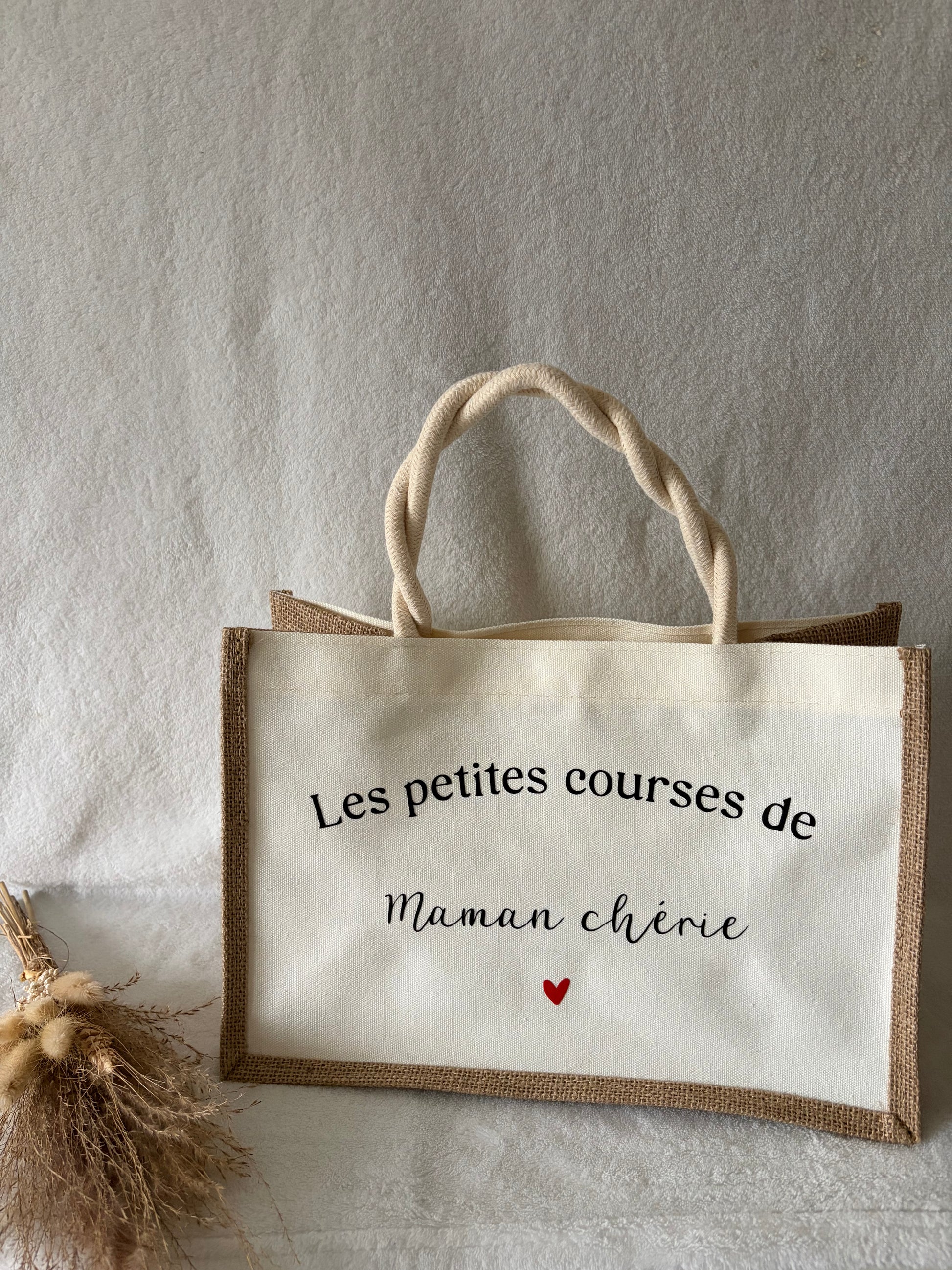 Sac en toile de jute les petites courses de maman chérie
