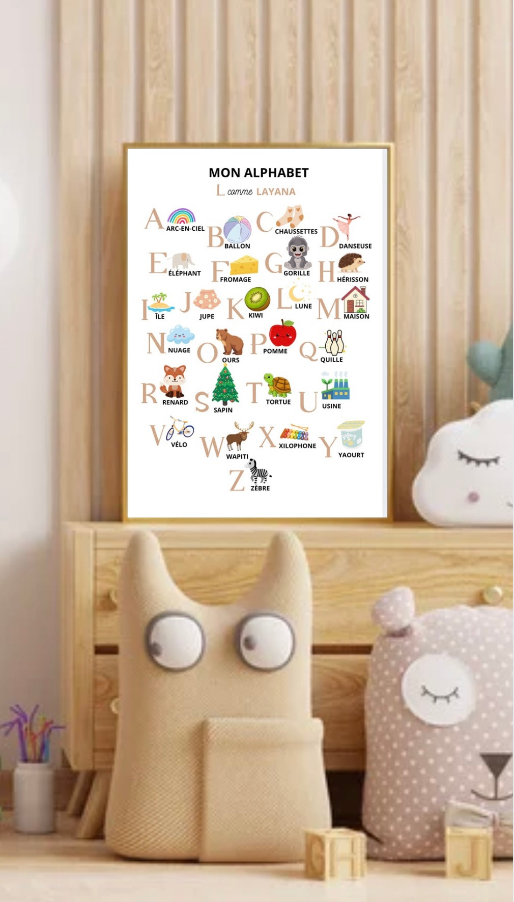 Une création unique pour décorer vos murs avec émotion.Abécédaire ludique pour aider vos enfants dans l’apprentissage