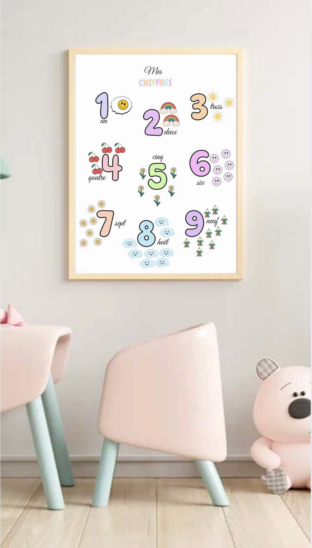 ❤️Une création unique pour décorer vos murs avec émotion.Apprentissage des chiffres par visuel coloré