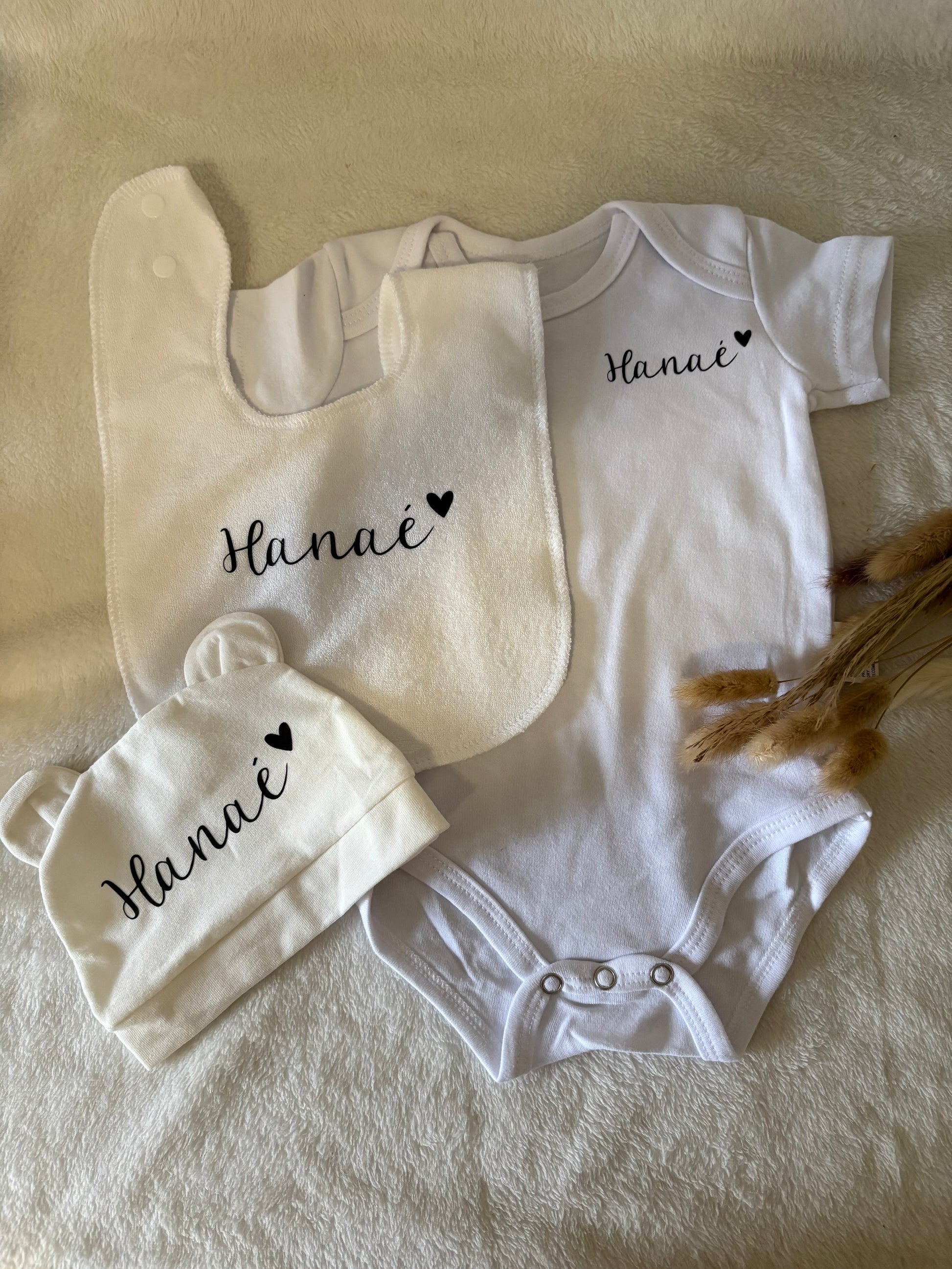 - Personnalisation unique : Prénom du bébé imprimé sur chaque pièce, pour un cadeau vraiment personnel.